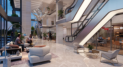 The whole ground, 1st and 2nd floor are dedicated to premium retail spaces in order to attract high-end brands, bank retail branches and customers with our grand spaces and elegant elevation.